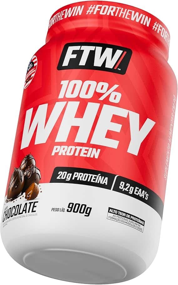 FTW 100% Whey Protein com Proteína Concentrada WPC, Suplemento Alimentar Pós-Treino em Pó com Fonte de Proteína do Soro do Leite, Alto Valor Biológico, Sem Glúten – Pote 900g (Sabor Chocolate)