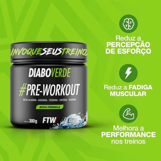 FTW Pré-Treino Diabo Verde em Pó com Cafeína, Aminoácidos Beta‑Alanina e Arginina para Treinos e Atividades Físicas – Pote 300 g (Sabor: Black Ice)