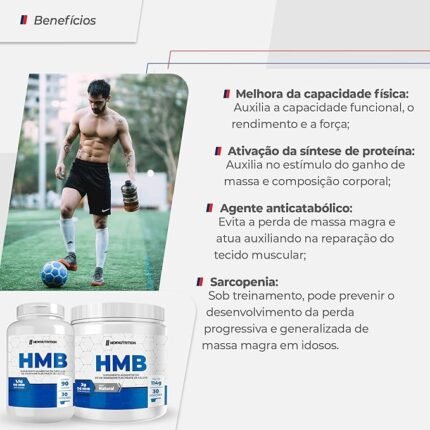 O HMB (β-hidroxi-β-metilbutirato) pode ajudar a proteger o músculo esquelético da quebra ao apoiar a estrutura das células musculares após exercícios intensos. O HMB 1000 mg da ARNOLD NUTRITION® é um metabólito importante do aminoácido essencial de cadeia ramificada (BCAA) L-Leucina que ajuda a aumentar o peso e a força muscular. A perda muscular ocorre à medida que o corpo aumenta a degradação de proteínas (catabolismo), a fim de liberar aminoácidos musculares como combustível. O HMB 1000 mg da ARNOLD NUTRITION® influencia a força e a massa corporal magra, pois atua como um agente anti-catabólico.