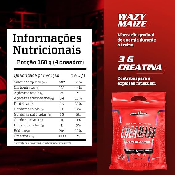 Hipercalórico formulado com uma combinação de creatina, carboidratos e proteínas de alta qualidade. Creamass oferece os nutrientes essenciais para impulsionar o aumento de volume muscular e a recuperação após os treinos intensos. A adição de creatina auxilia no ganho de massa muscular, a força e a resistência durante os treinos.