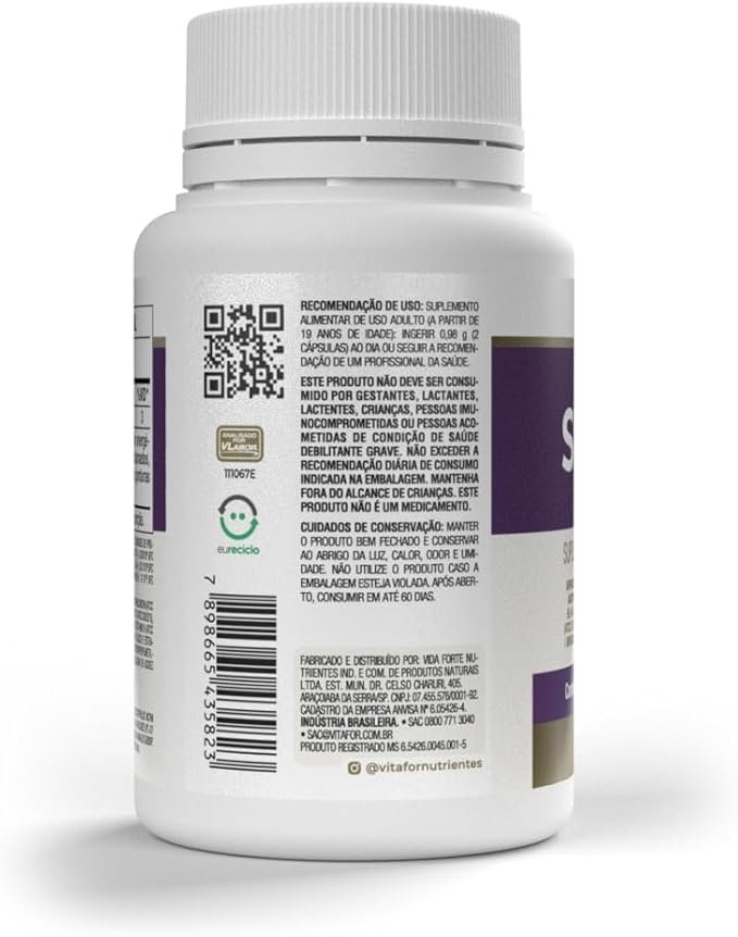 Suplemento alimentar de uso adulto (a partir de 19 anos de idade): ingerir 0,98 g (2 cápsulas) ao dia ou seguir a recomendação de um profissional da saúde